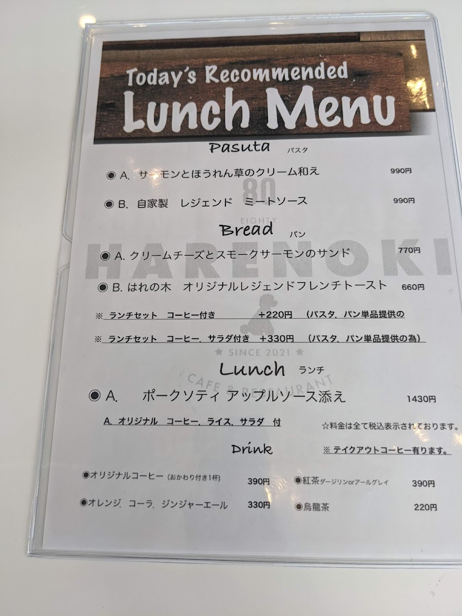 Hare no Ki Dog Cafe & Restaurant Menu